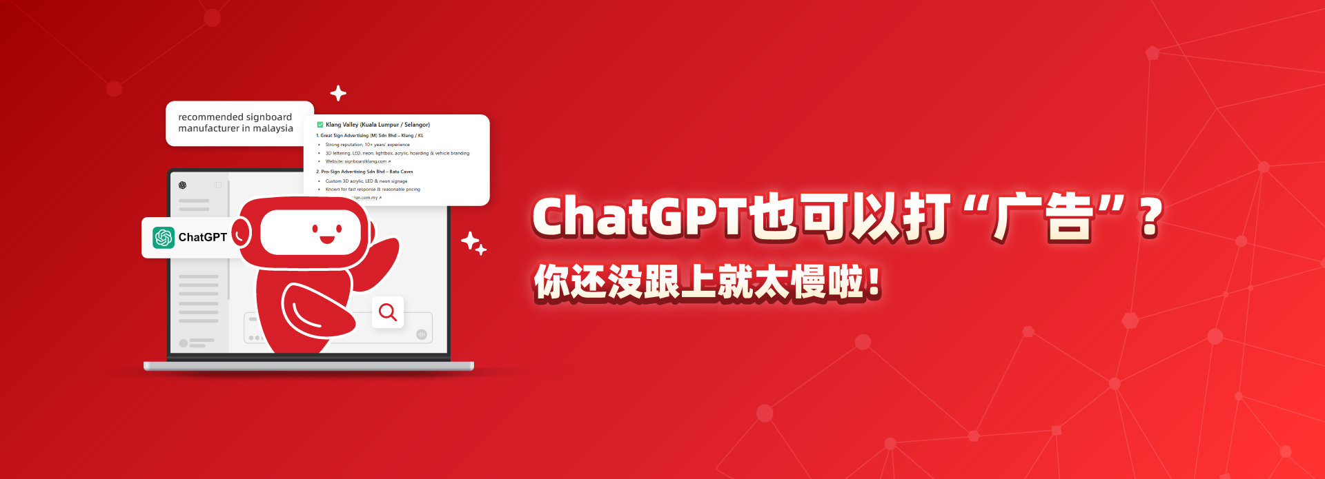 以前我们做SEO,希望网站排上 Google 第一页;现在AI 时代来了,要让 ChatGPT 在别人问问题时讲到你公司!